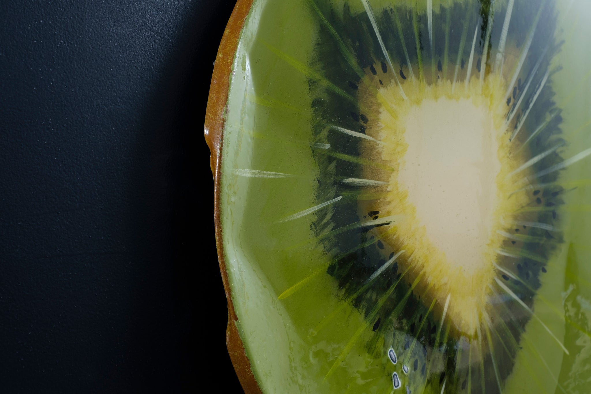The fruit sculptures of the TuttiFrutti Collection, sometimes "cut into slices", sometimes "eaten", sometimes "rotten", were created to raise awareness of the excessive consumption of food by also making the dimensions of the works themselves excessive.